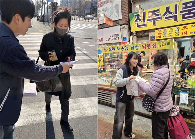 • 지난 2월 구포1·2·3동 지역주민들을 직접 만나 신규 개강 프로그램, 주민모임, 사각지대 발굴 안내 등 다양한 복지관 정보와 소식이 담긴 홍보지를 전달했습니다. 앞으로도 정기적인 찾아가는 복지관 활동을 통해 지역주민들에게 다양한 정보를 전달할 예정이니 많은 관심 부탁드리겠습니다.   ■ 문의 : 김지원 사회복지사 (☎336-7007~8)